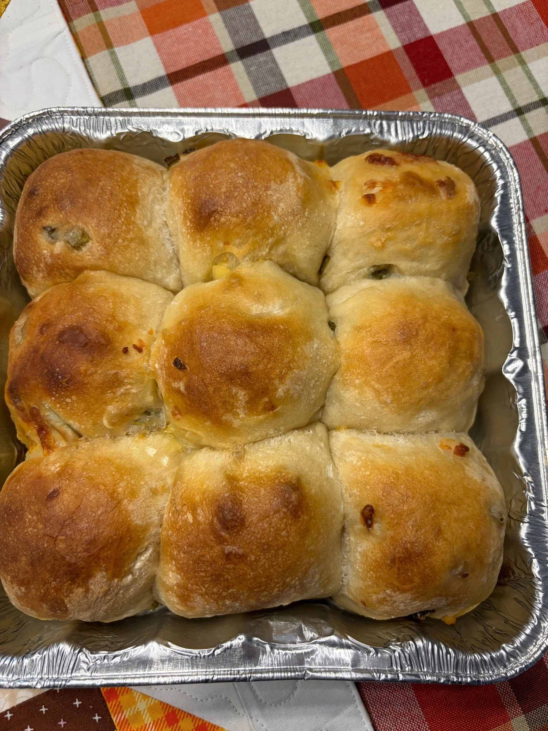Store › 9 Pack of Sourdough Jalapeño Cheddar Dinner Rolls 9 Pack of Sourdough Jalapeño Cheddar Dinner Rolls $12.00 Ingredients: King Arthur Flour,Organic Cheddar Cheese,Organic Jalapeños, Water, Raw Organic Honey, and Pink Himalayan Salt Ingredients: King Arthur Flour,Organic Cheddar Cheese,Organic Jalapeños, Water, Raw Organic Honey, and Pink Himalayan Salt Quantity: Add To Cart Added! Reviews Reviewer Name Review Date Star Rating Description Posted on Etsy Product Show More